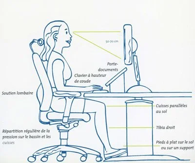 Une nouvelle année s’ouvre, nous reprenons tous le chemin du travail, et pour certains d’entre nous, c’est un retour à la position statique prolongée devant un écran d’ordinateur. Il est peut-être temps de regarder votre poste de travail avec des yeux neufs, et de mettre en place quelques aménagements pour vous permettre de travailler dans de bonnes conditions, et éviter l’installation de gènes ou de douleurs.